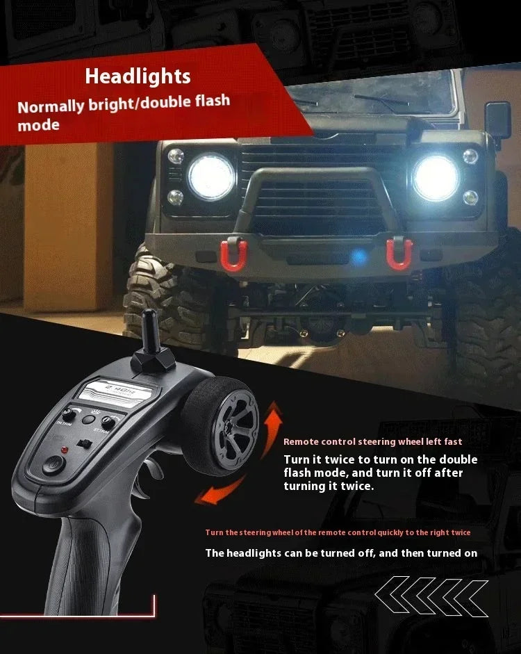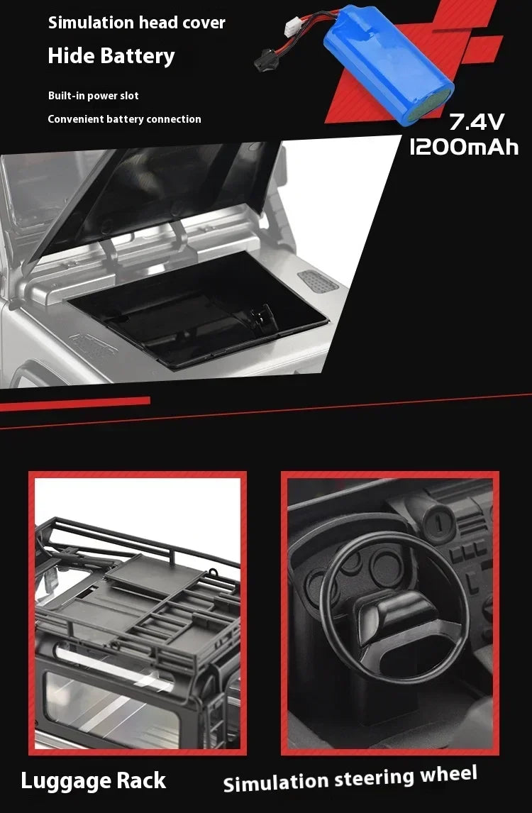 Carro de controle remoto de escalada real com câmera Rc Car Off Road 4x4 Land Rover Defender D90 Modelo Rc Veículo Off-Road