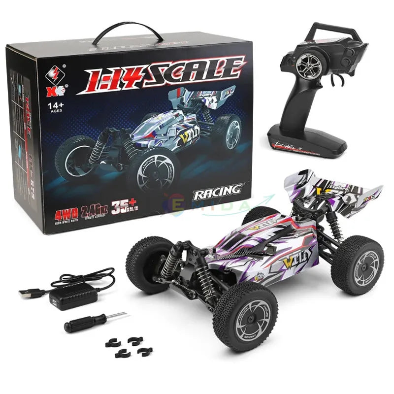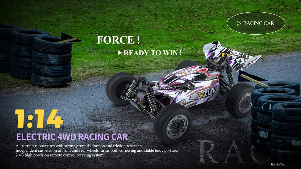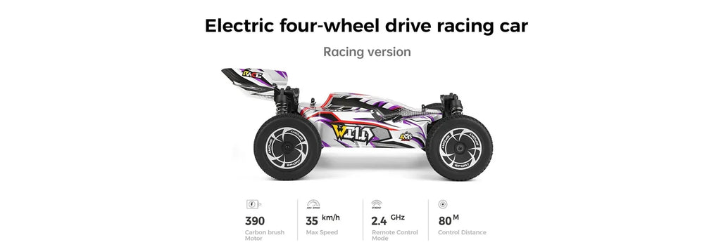 - Sistema de rádio de 2,4 GHz com capacidade anti-interferência permite correr ao mesmo tempo na mesma pista. Distância de controle de 100 metros, correndo livremente.