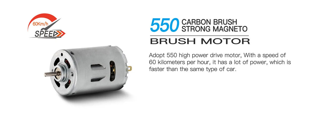 - Velocidade máxima de 60 km/h: Utiliza motor super potente de 20.000 RPM e 550 rpm, controle eletrônico de velocidade de 60 A, energia elétrica convertida em potência ao máximo, tração nas 4 rodas para carros de corrida que pode fornecer torque potente e significativo, facilitando a execução de manobras difíceis. Nascido para ser campeão.