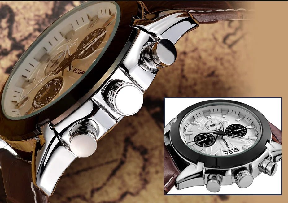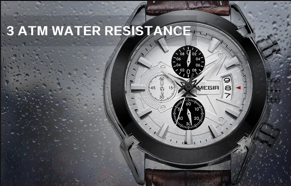 Características: Cronômetro, Luminoso, Cronógrafo, Calendário Completo, Resistente à Água