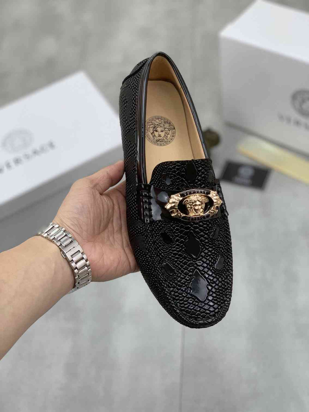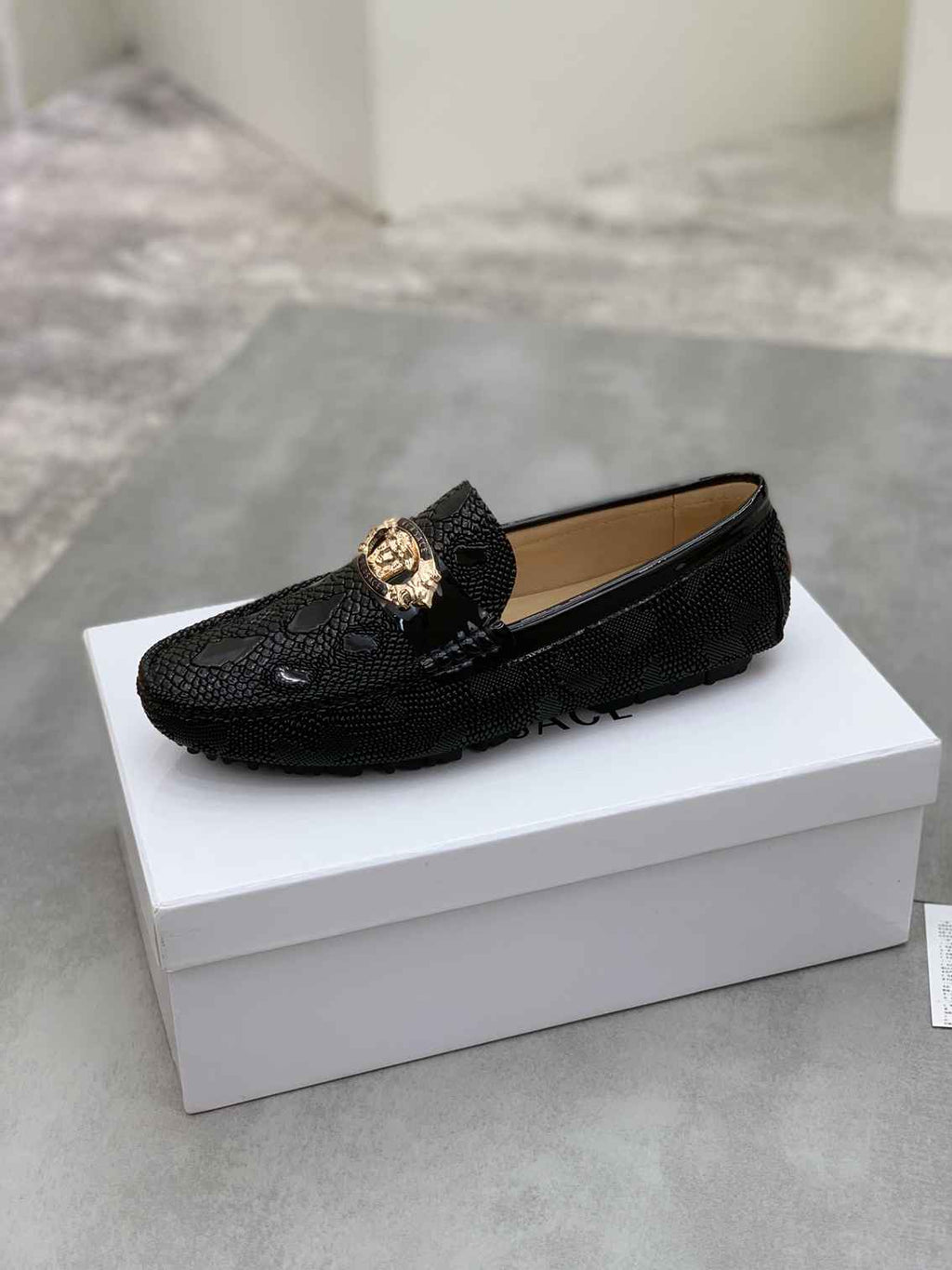 【VERSACE】Os novos Mocassim masculinos Versace estão no mercado Site oficial de qualidade original Sincronização 1:1 Primeira camada de couro ,Forro de couro, formato perfeito, qualidade superior, sola de borracha resistente ao desgaste, formato completo do sapato. , sentido tridimensional completo Nu, super versátil, sofisticado, mas de bom gosto, moderno e inovador. Disponível em preto!