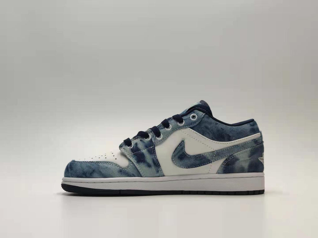 O Air Jordan 1 Low GS “Acid Wash Denim” é o tamanho juvenil do primeiro sapato de assinatura de Michael Jordan em uma coloração que apresenta jeans de lavagem ácida atraente em seu design. Este tênis apresenta um dedo do pé perfurado, enquanto o painel central é construído em material de lona branca durável. As sobreposições são projetadas em um material denim azul tie-dye, lavagem ácida. Um Swoosh azul aparece nas laterais e um logotipo branco das Asas pode ser encontrado no calcanhar. Por baixo, uma entressola branca e uma sola de borracha azul completam o visual.