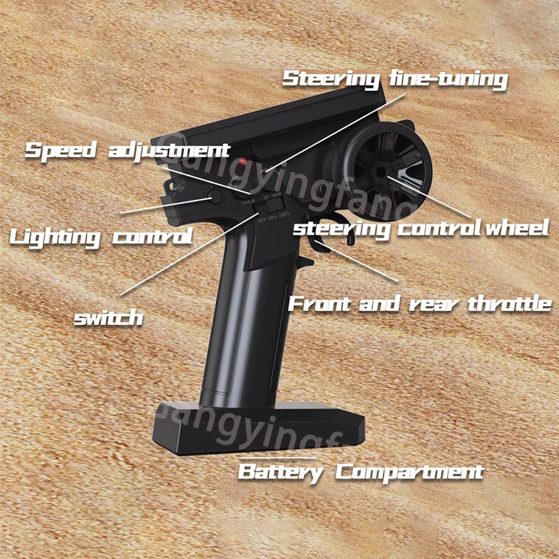 4. Sistema de controle remoto sincronizado 2.4G em escala real. Acelerador/direção em escala real;