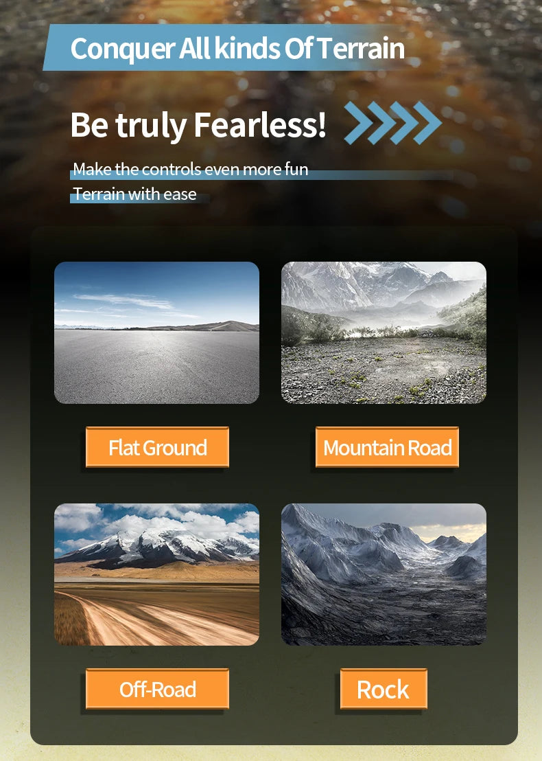 Adota um design com quatro forças de acionamento, equipado com motor brushless, alta potência, amortecedor independente e pode lidar facilmente com todos os terrenos.